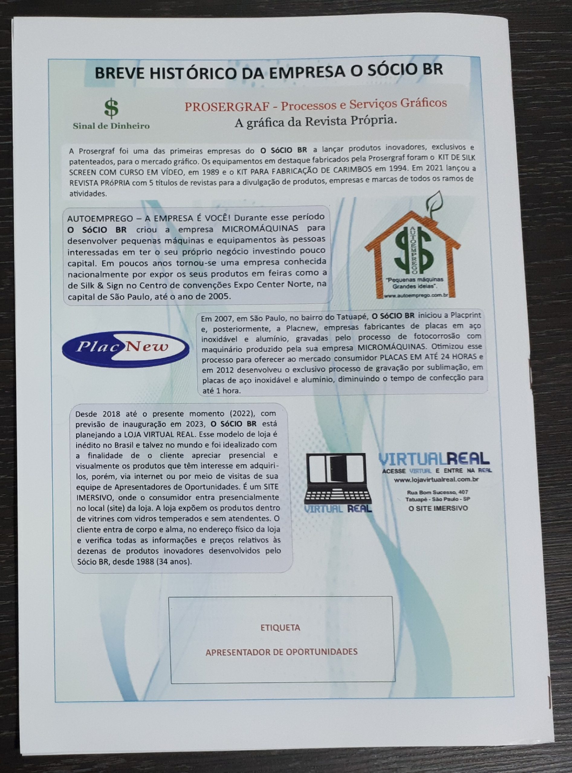 PANFLETO EM REVISTA – A4-2P – Sistema Cooperado de Panfletagem. Os custos dos itens abaixo são rateados entre as quatro empresas participantes, não concorrentes: