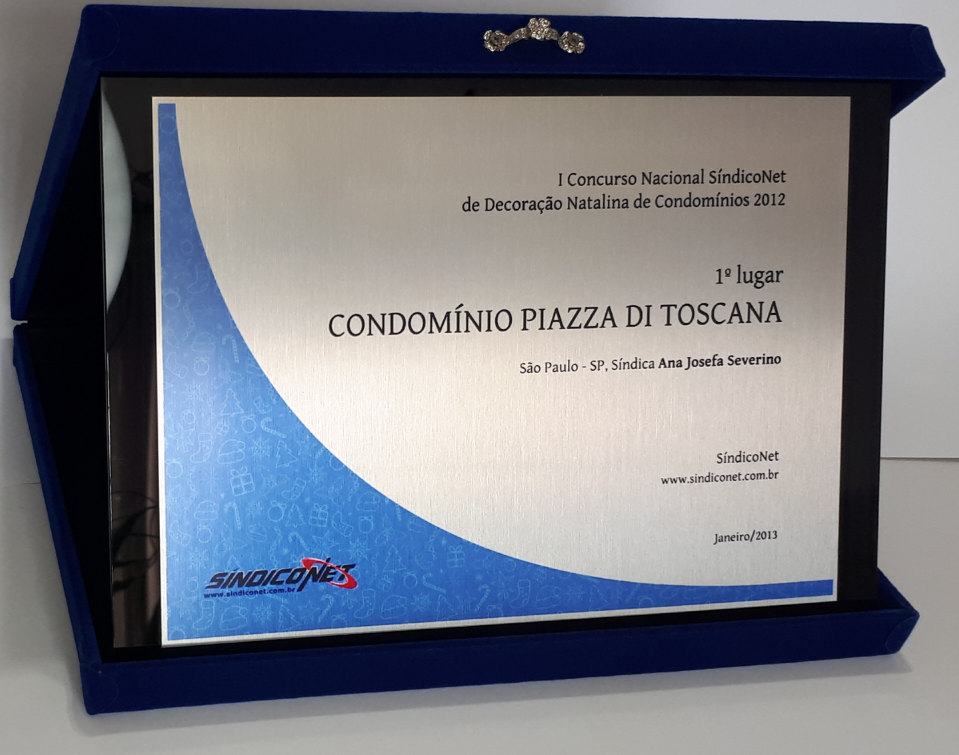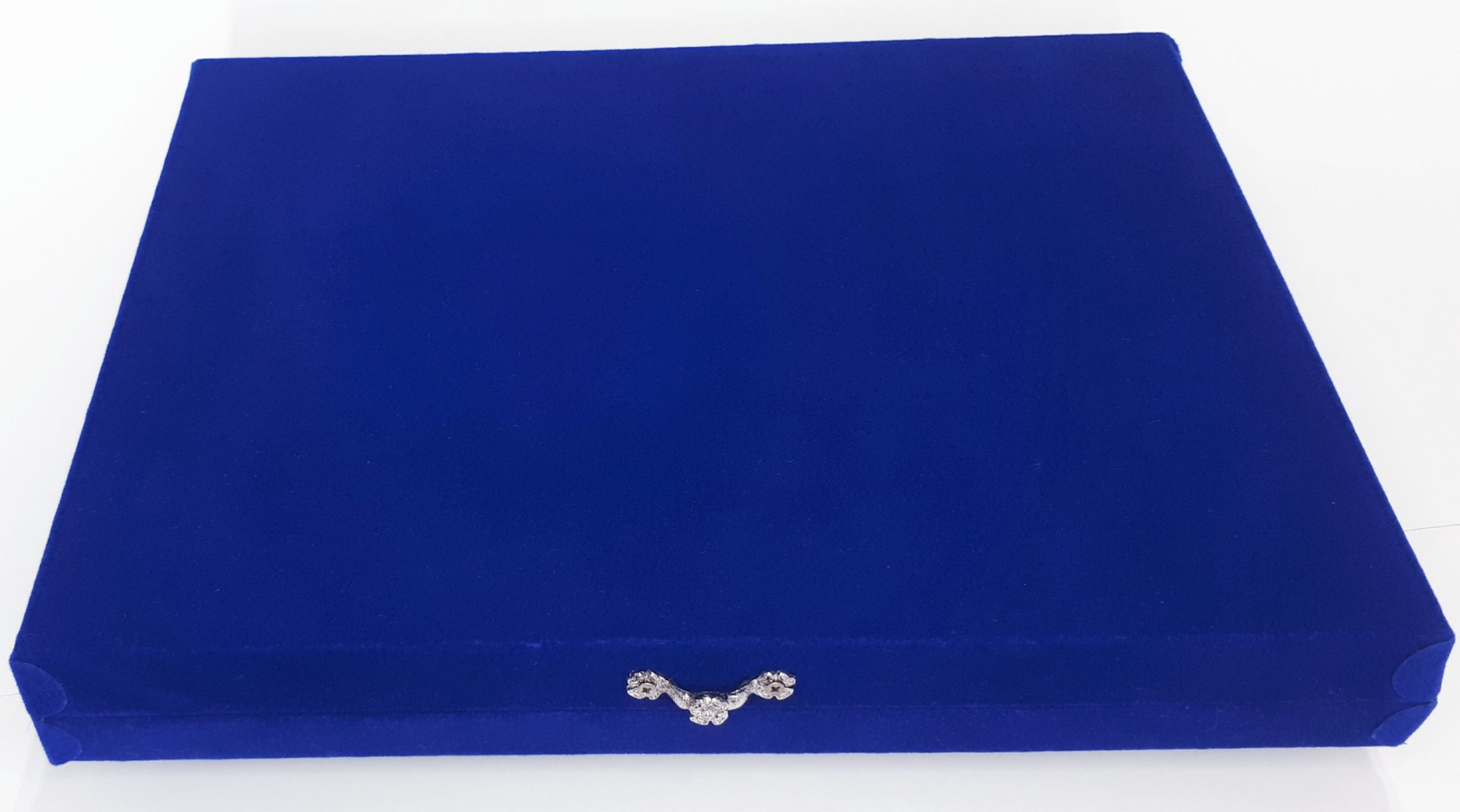 PLACA-ESTOJO CLÁSSICO: Conhecidas no mercado como Placas de Homenagem. Este modelo de estojo forrado com veludo TNT azul royal possui uma ABA DE ACRÍLICO PRETO, onde será afixada a placa de 26 x17cm (grande), de aço inoxidável, escovada e gravada com a arte solicitada e aprovada por você. A PLACA-ESTOJO CLÁSSICO é fornecida em três tamanhos de placas gravadas e seis cores de estojos a escolher por quem prestará a homenagem.
