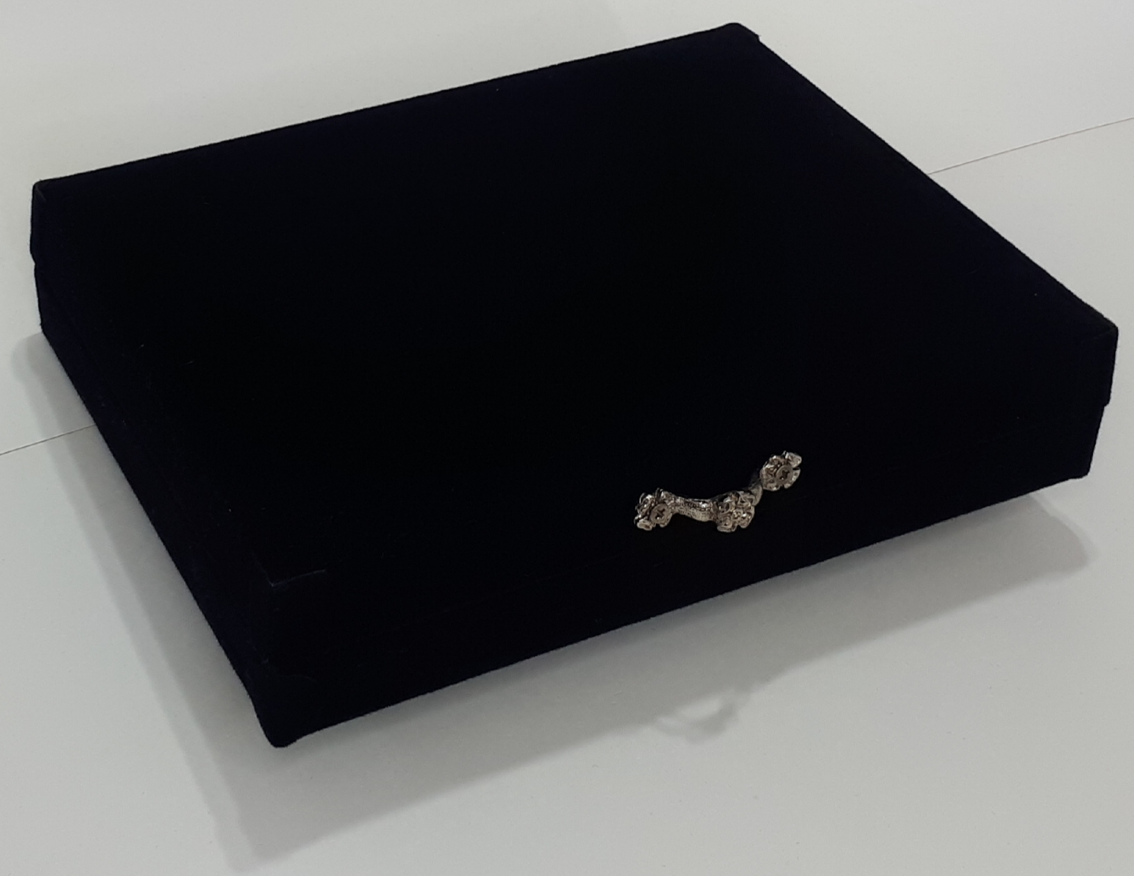 Para placa de homenagem. Este modelo de estojo forrado com veludo TNT preto possui um BERÇO DE AÇO INOXIDÁVEL ESPELHADO (polido que reflete como um espelho), onde será afixada a placa de 15 x 9cm (pequena), de aço inoxidável envernizada para sublimação, depois que você gravá-la. O estojo é fornecido em seis diferentes cores. CORES: Preto – Vermelho Azul marinho – Azul royal –Verde – Vinho.