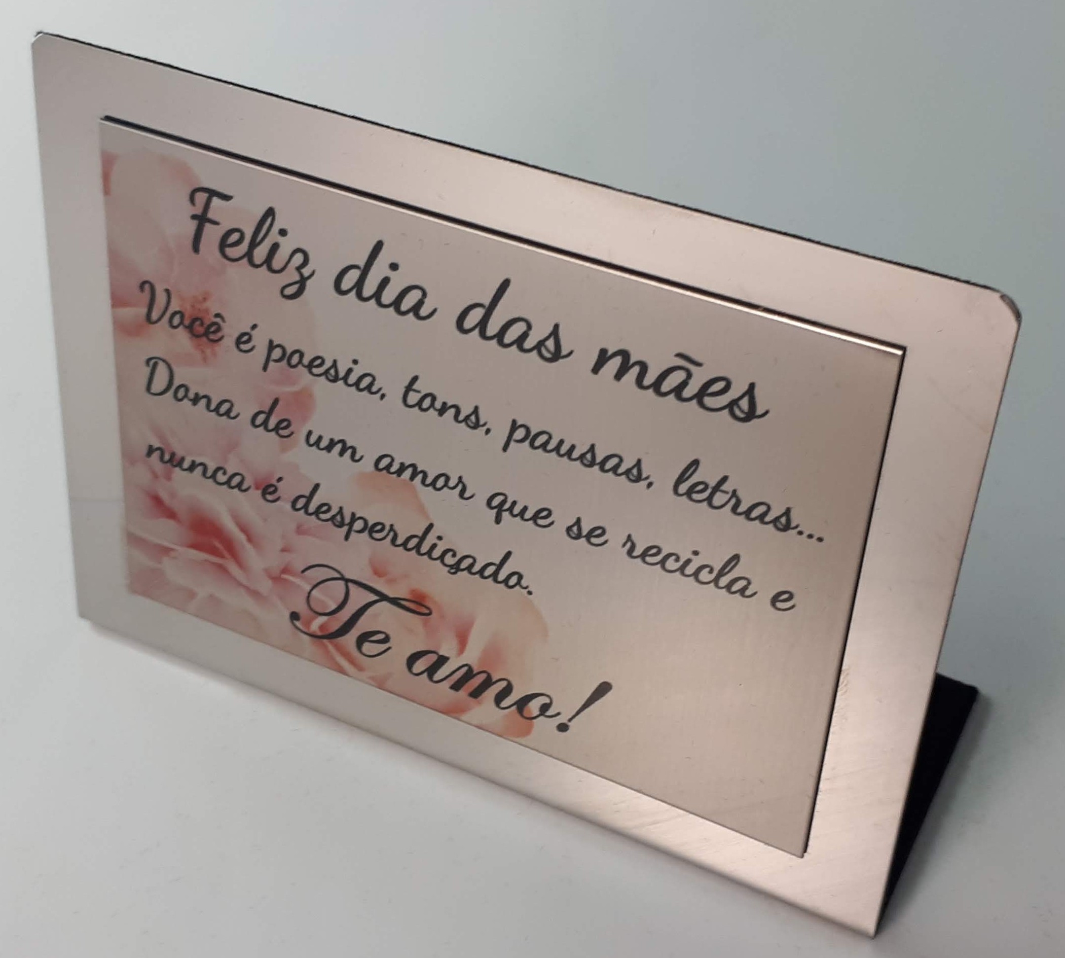 PLACA-TROFÉU Tipo Porta-Foto. Dia das mães, dia dos pais, dos namorados, da secretária e por aí vai… O dia da sogra também é uma data especial para você? Dê um troféu para a sua sogra, em reconhecimento pelo belo presente que ela te ofertou. Alguns dizem que considera a sogra como segunda mãe, mas outros, injustos, dizem que a melhor sogra do mundo é a do seu cônjuge. Placa de aço inoxidável espelhado e base dobrada. Placa gravada sobreposta, nas medidas 10cm x 7cm – Horizontal.