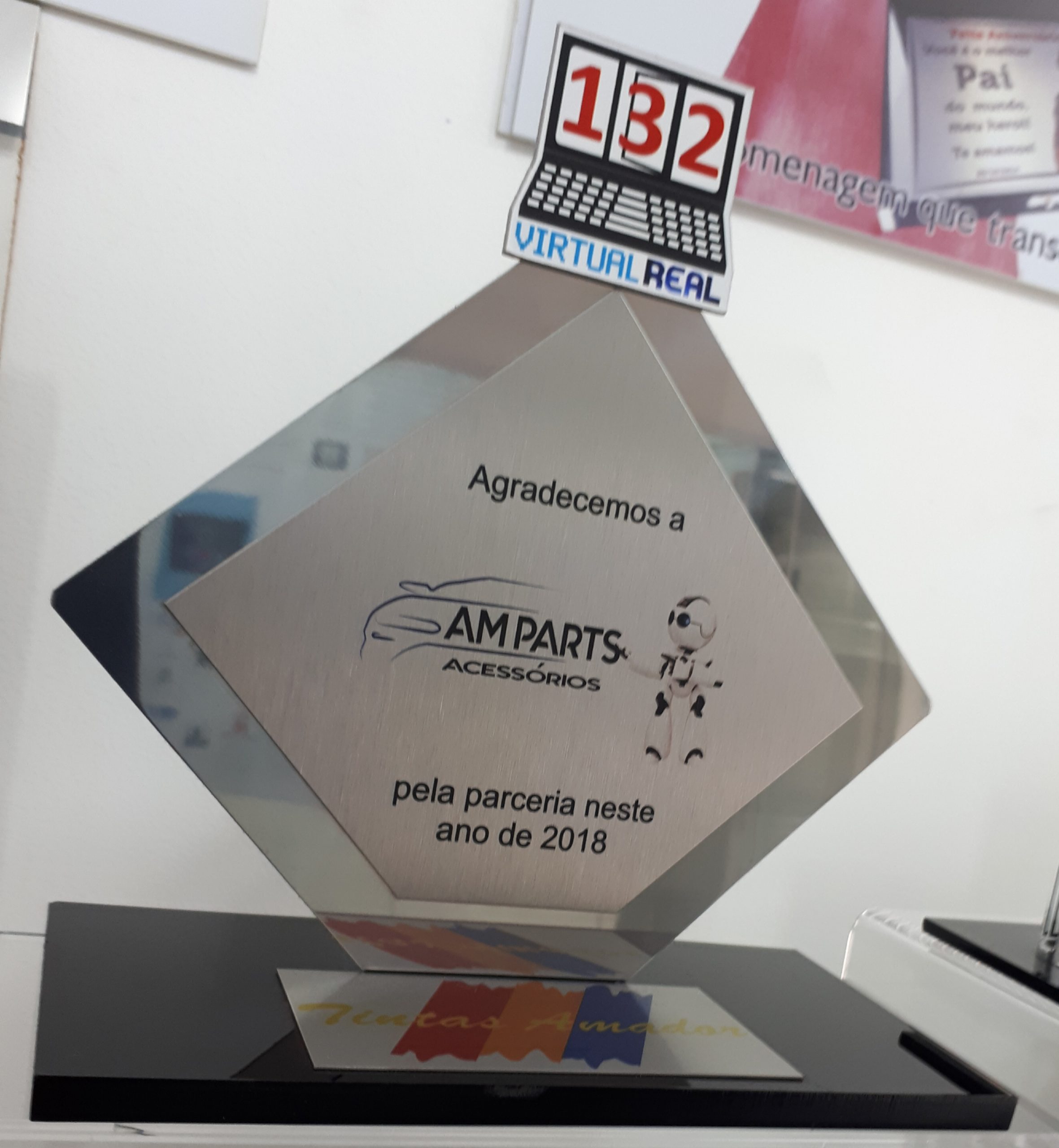 TROFÉU PARCERIA EMPRESARIAL Representantes, Distribuidores, Revendedores e melhores clientes são normalmente reconhecidos, pelas indústrias de diversos ramos de atividades, com o oferecimento de troféus para que as conquistas realizadas pela parceria fiquem indelevelmente registradas. Torre de aço inoxidável espelhado com medidas de até 15cm x 15cm. Base de acrílico preto com medidas de até 20cm x 6cm x 8mm. placas gravadas 12cm x 12cm – 5cm x 3cm.